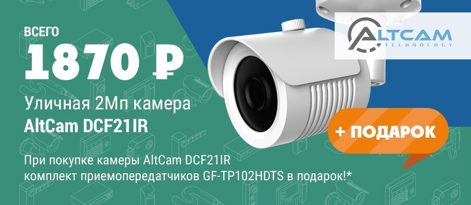 При покупке уличной камеры AltCam DCF21IR комплект приемопередатчиков GF-TP102HDTS в подарок!