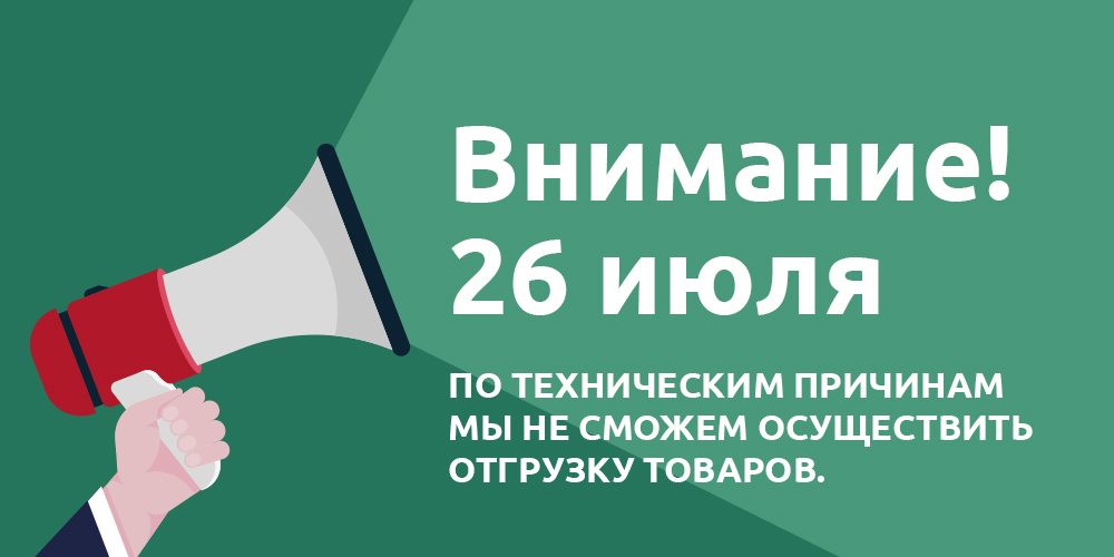 По техническим причинам 26 июля 2022 с 10 часов утра и до окончания работ, проводимых городом, в нашем Главном офисе будет отключено электричество — мы не сможем осуществить отгрузку товаров, но все наши подразделения продолжат свою работу. Приносим извинения за временные неудобства.