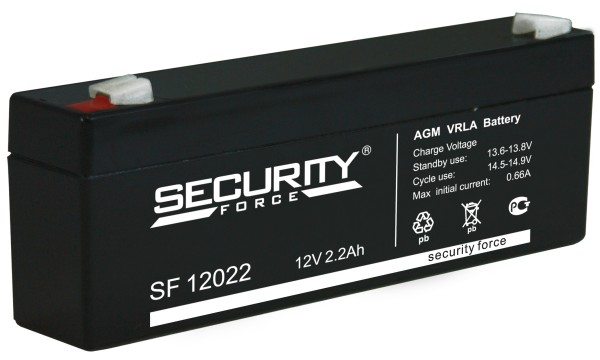 Свинцово-кислотная аккумуляторная батарея Security Force SF 12022 изготовлена по технологии AGM (Absorbent Glass Mat). Номинальная емкость 2,2 Ач. Рекомендована для использования в слаботочных системах и оптимизирована для работы в циклическом режиме. Диапазон рабочей температуры от -10° до +50° С. Номинальное напряжение 12 В.